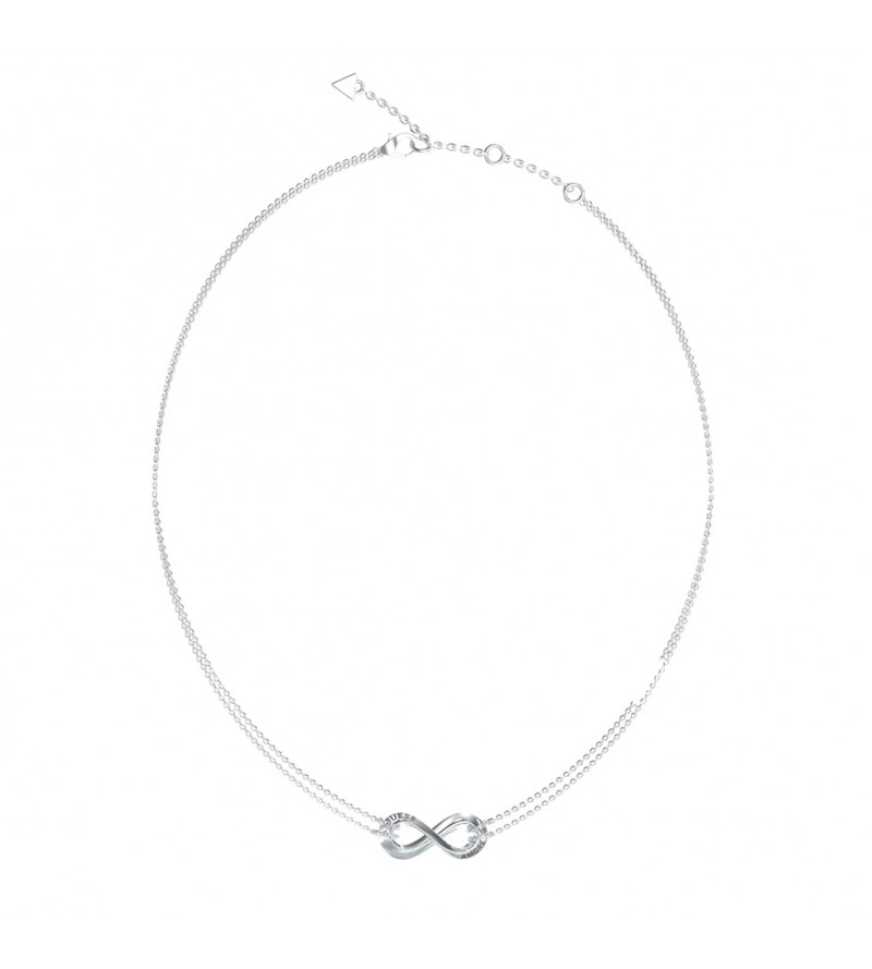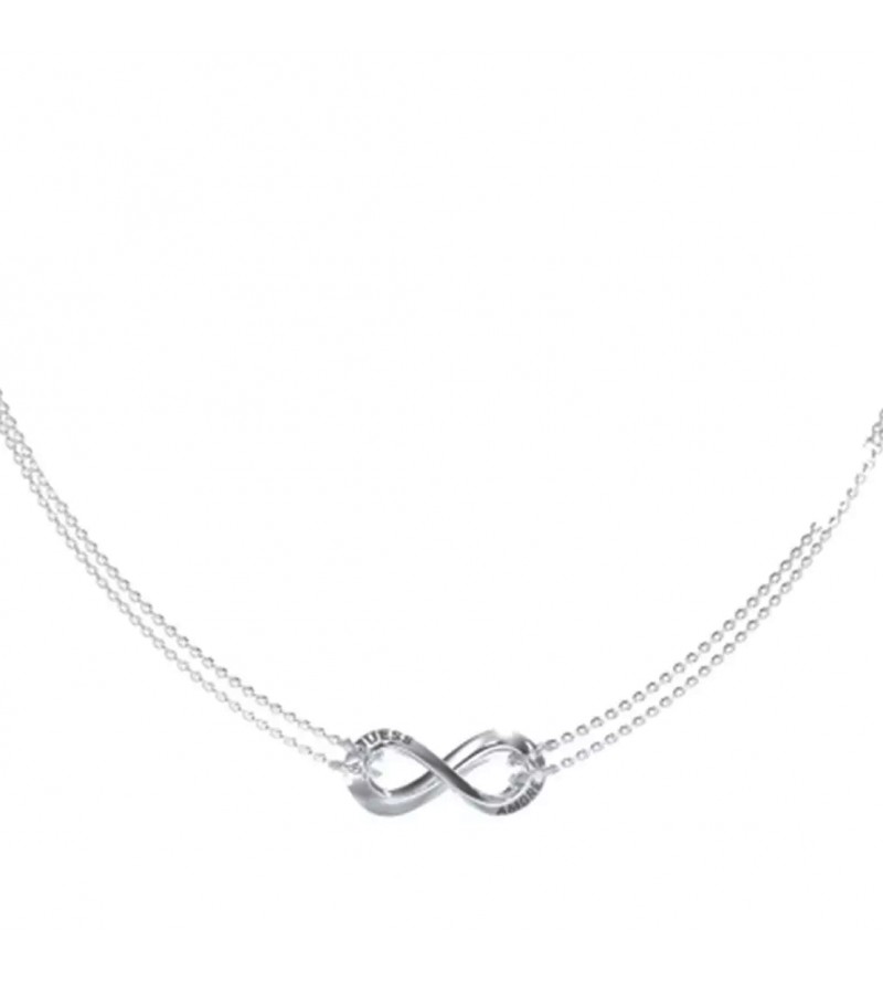 Collar Guess Mujer Acero Infinito JUBN05049JWRHT-U: Gargantilla fabricada en acero pulido con logotipo Guess grabado en el símbolo de infinito. Cierre de tipo mosquetón con anillas para regular su largo.