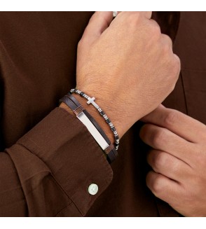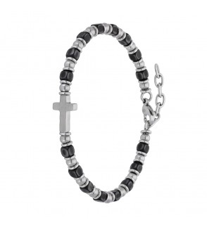 - Pulsera de acero con detalles en color negro mate y cruz central
