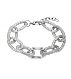 Pulsera cadena eslabones combinada eslabón brillo y mate. Versión en acero. Cierre mosquetón.