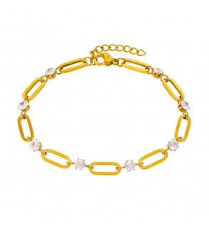 Pulsera eslabones con circonitas. Versión en dorado. Cierre mosquetón.