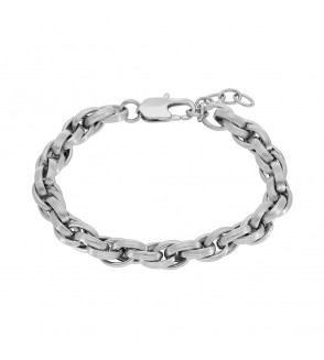 Pulsera eslabón ovaladao curvado. Versión en acero. Cierre mosquetón. Cadena adaptable.