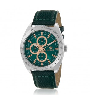 - Esfera: Color verde con índices, detalles y agujas en color cobre.