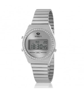 - Reloj digital pantalla LCD. Bisel y esfera con circonitas blancas.