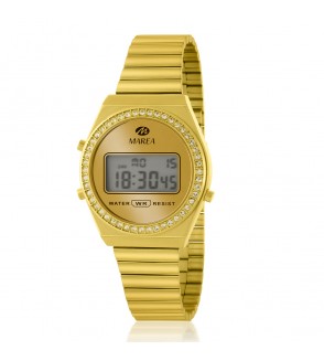 - Reloj digital pantalla LCD. Bisel y esfera con circonitas blancas.
