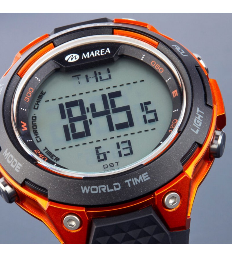 Funciones: hora mundial, horario de verano, luz, 2 alarmas, pitido horario, fecha, día de la semana, cronómetro con memoria de tiempos parciales, cuenta regresiva y formato 12/24 horas.