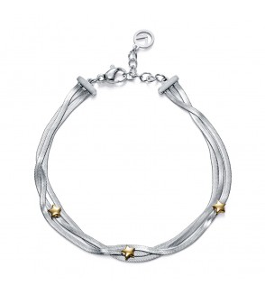 - Una pulsera que captura la esencia de la elegancia contemporánea con un toque de magia. Fabricada en acero con una cadena de serpiente plana múltiple, presenta un acabado IP dorado que le da un brillo cálido y sofisticado. Las estrellas que adornan el diseño aportan un toque de delicadeza y simbolizan sueños y aspiraciones. Con un largo de 17,5 cm más 2 cm de extensión, se ajusta cómodamente a la muñeca, convirtiéndola en un accesorio ideal para realzar cualquier look con un toque moderno y lleno de personalidad. Una joya pensada para mujeres que buscan sofisticación y estilo en cada detalle.