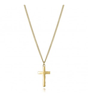 - Collar de hombre de aceroIp dorado con colgante con cruz
