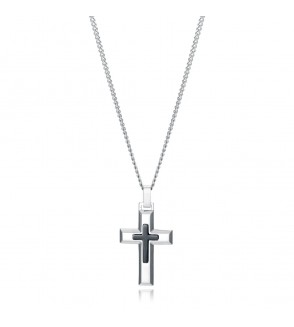 - Collar de hombre Magnum de acero con cruz de acero pulido en Ip negro