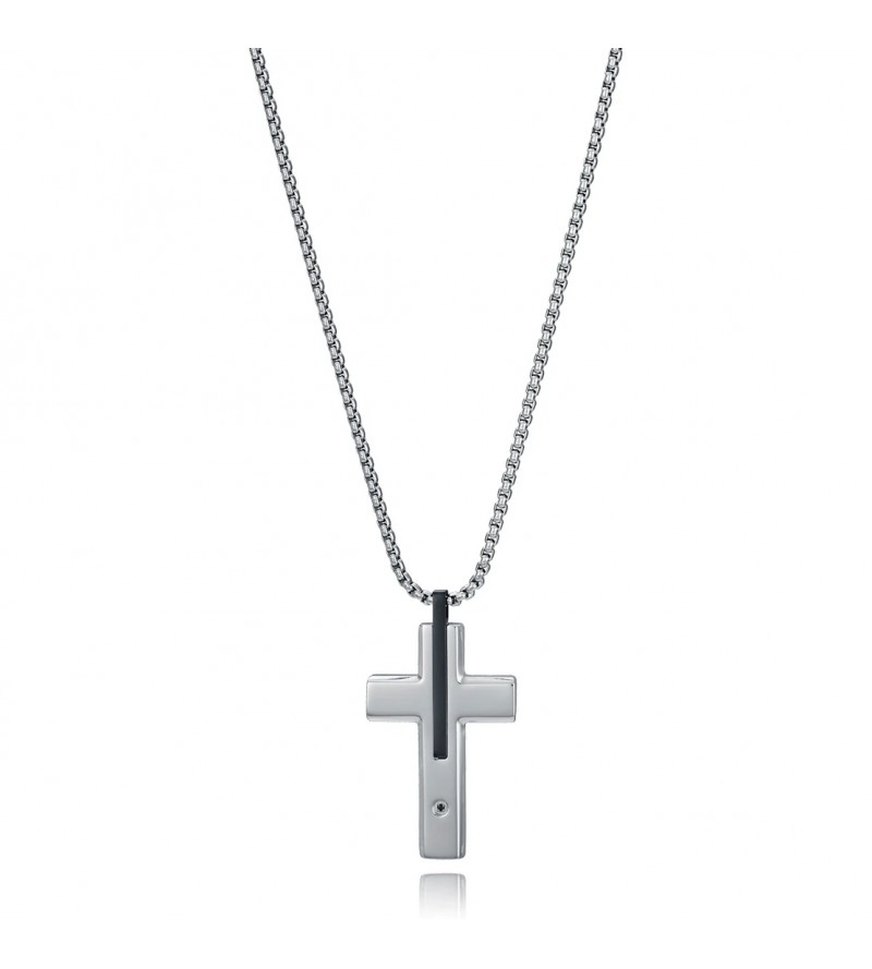 - Un collar que combina simbolismo y elegancia en un diseño contemporáneo. Fabricado en acero con un acabado IP negro, este collar presenta una cruz adornada con una circonita negra, aportando un toque de sofisticación y distinción. Con un largo de 55 cm más 5 cm de extensión, se ajusta cómodamente a diferentes estilos y escotes, convirtiéndolo en un accesorio versátil ideal para cualquier ocasión. Perfecto para hombres que buscan un collar que combine fe, estilo y un toque de modernidad. Una pieza única que realza cualquier look con un toque de carácter.