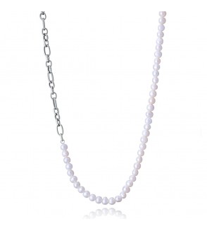 Collar de acero y perlas naturales