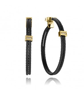 - Unos pendientes que fusionan elegancia y modernidad en un diseño audaz. Fabricados en acero con acabados IP negro y dorado, presentan un doble cable unido por una barra central, creando un efecto dinámico y sofisticado. Las circonitas engastadas añaden un toque de brillo luminoso que resalta la pieza con elegancia. Con un diámetro de 4,5 cm, estos pendientes tienen la medida perfecta para destacar con distinción sin perder la ligereza. Ideales para mujeres que buscan un accesorio contemporáneo que combine estilo, versatilidad y un toque de luminosidad. Diámetro 4,5 cm.