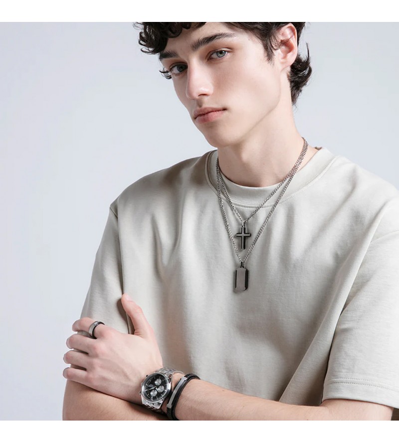 Collar de titanio para hombre con colgante de placa de titanio e Ip negro