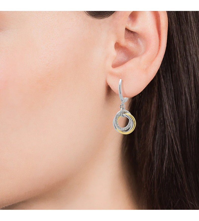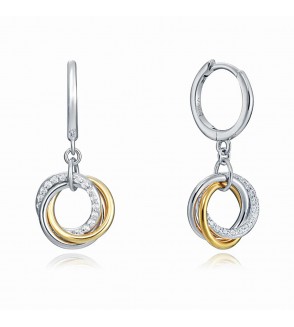 Pendientes Elegant de plata de ley en 2 tonos con anillas entrelazadas y circonitas