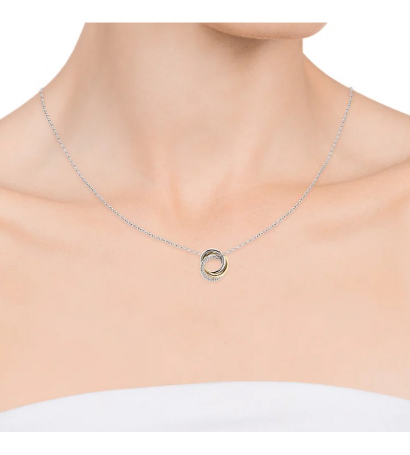 Collar Elegant de plata de ley en 2 tonos con anillas entrelazadas y circonitas