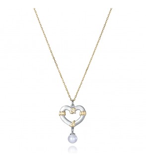 Collar de plata de ley con baño de oro, colgante forma de corazón con baño de rodio y mama con baño de oro y perla cultivada, largo 42 + 3 cm.