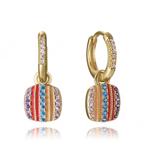 Pendientes de plata de primera ley con baño de oro, aro con circonitas y colgante con circonitas