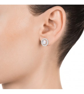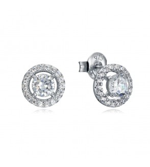 Pendientes Clásica de plata en forma de botón con circonitas