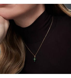 Collar de plata de primera ley con baño de oro y colgante cruz con piedras naturales topacio blanco y agata verde
