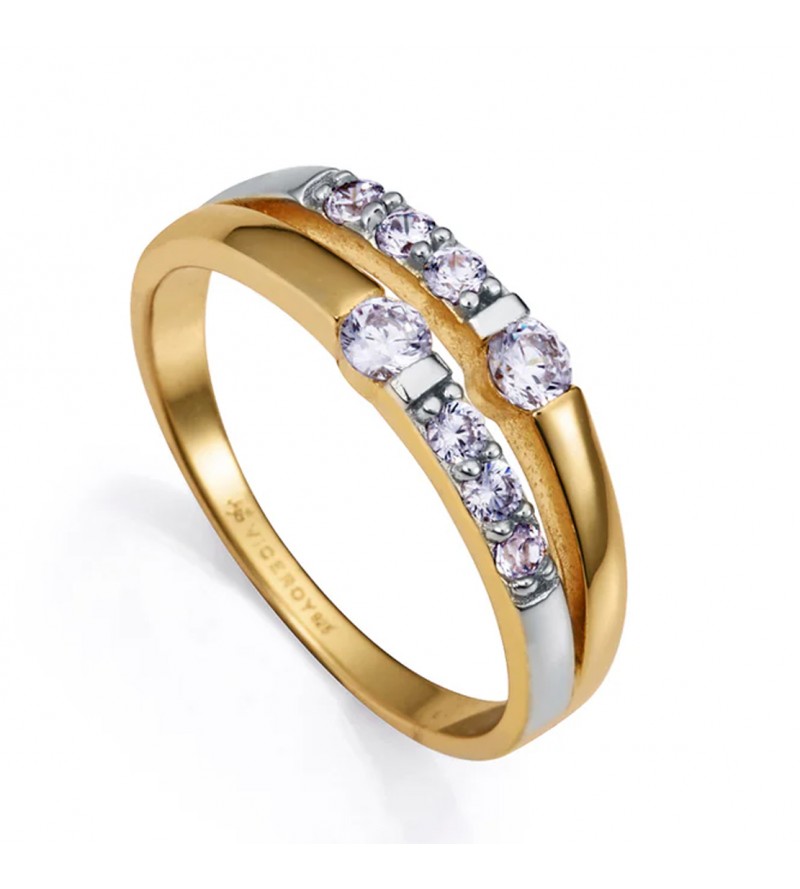 Anillo de plata de primera ley con baño de oro y rodio con circonitas